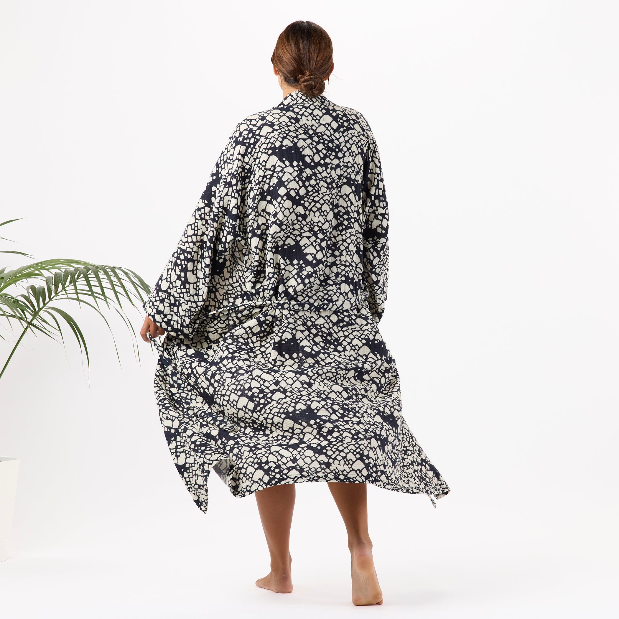 Transform your home into a personal sanctuary with this lightweight robe. Features front pockets and an adjustable belt for a perfect fit. Lounge in style with the below-the-knee length, ideal for relaxing at home or enjoying a quiet morning in bed. This isn't just a robe, it's your daily dose of spa day bliss.
