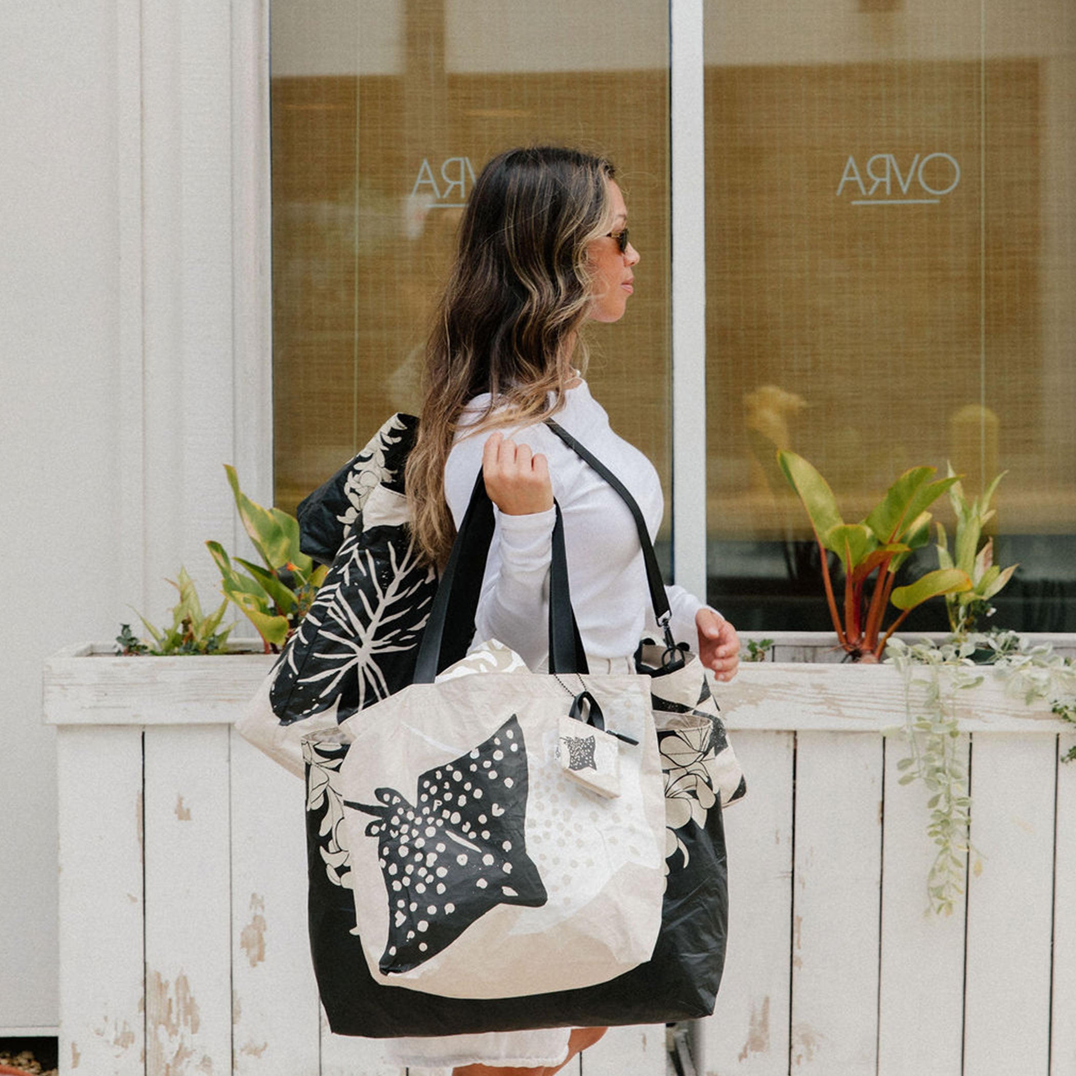 Inspired by eagle rays and how they glide through the water, our Director of Art and Design, Ro Oro hand carved a block print for this design which highlights the beautiful imperfections of nature.