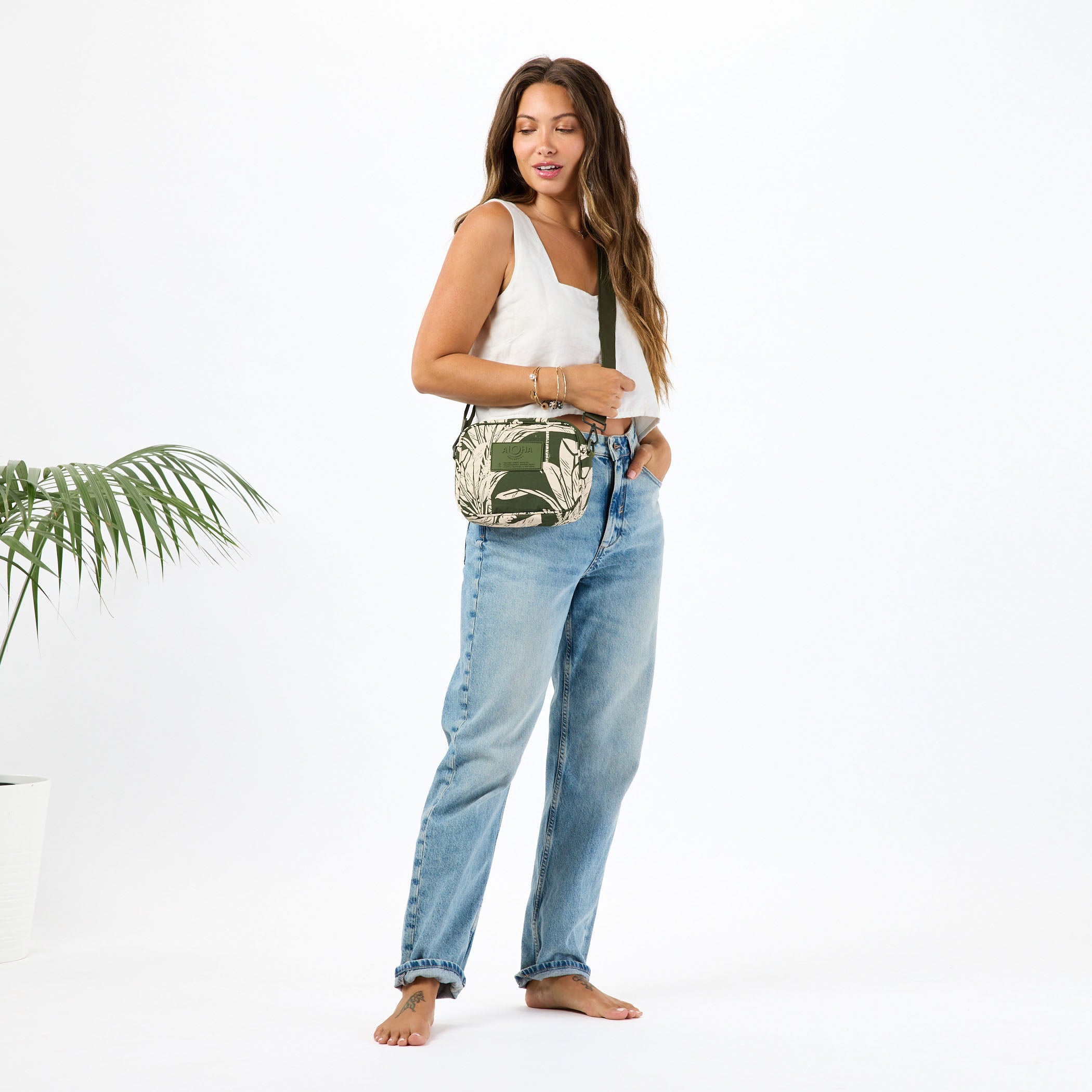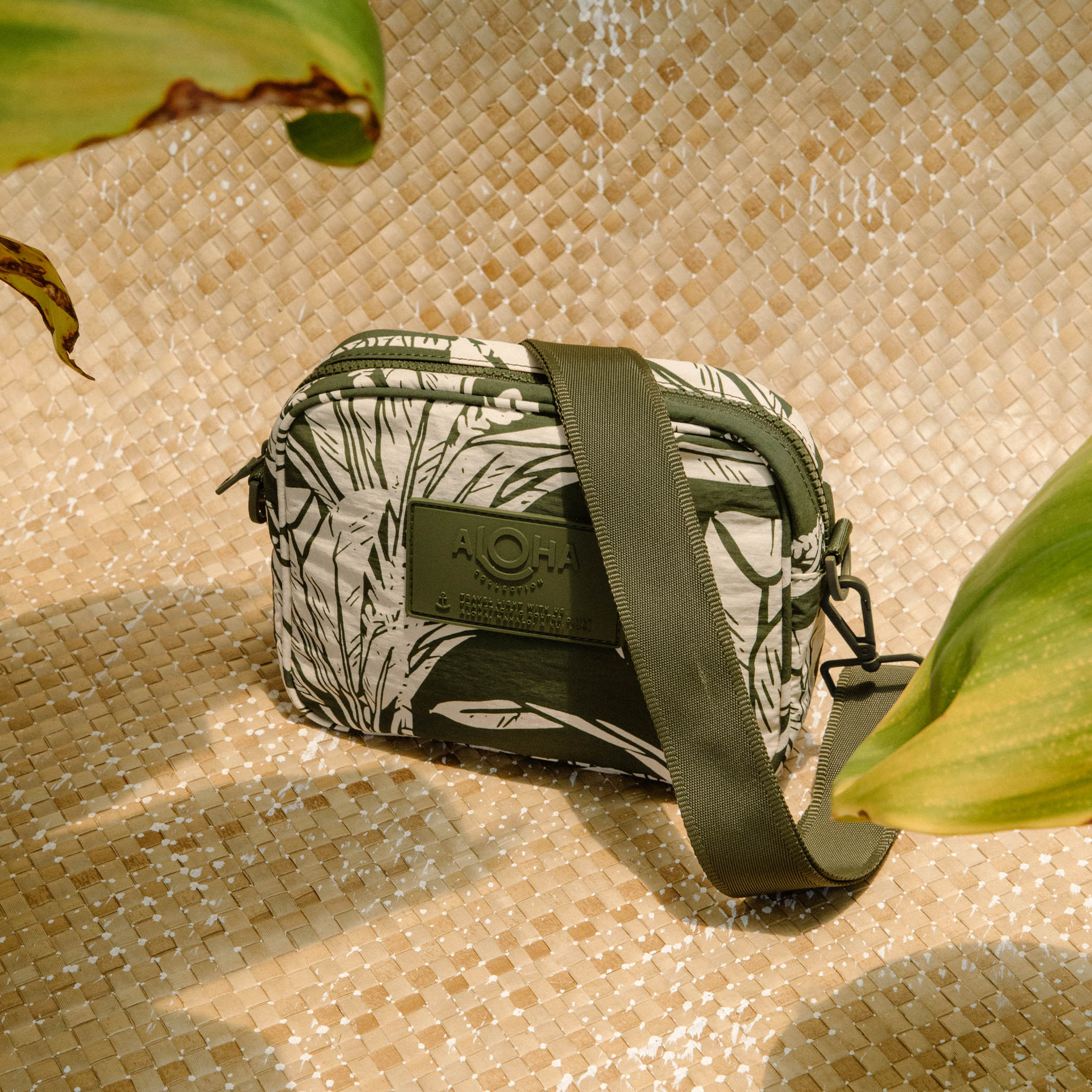 This print features bold, overlapping ti leaves evoking a sense of tropical warmth amidst autumn chill.