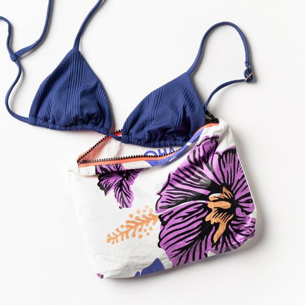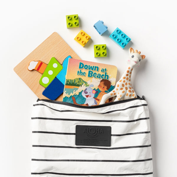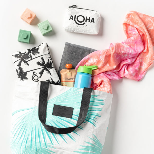 ALOHA bags are easy to clean! Just wipe down with a damp cloth or disinfectant wipe or hand wash in the sink with dish soap and hang to dry. You can even toss your bag in the washing machine with mild laundry detergent, just be sure to run on delicate and hang to dry.