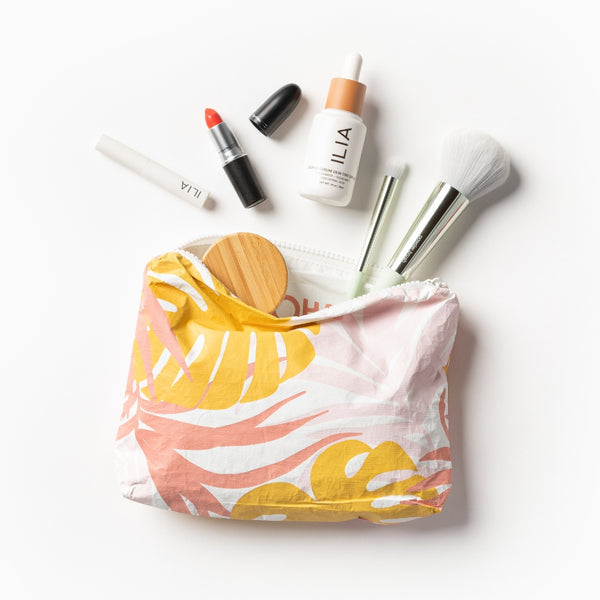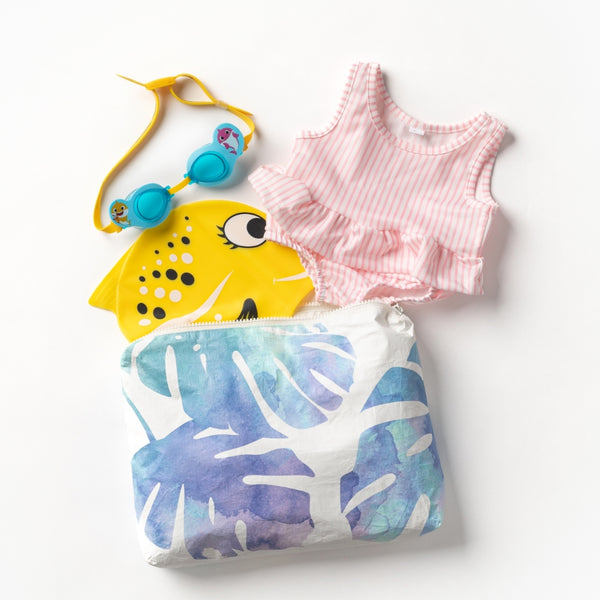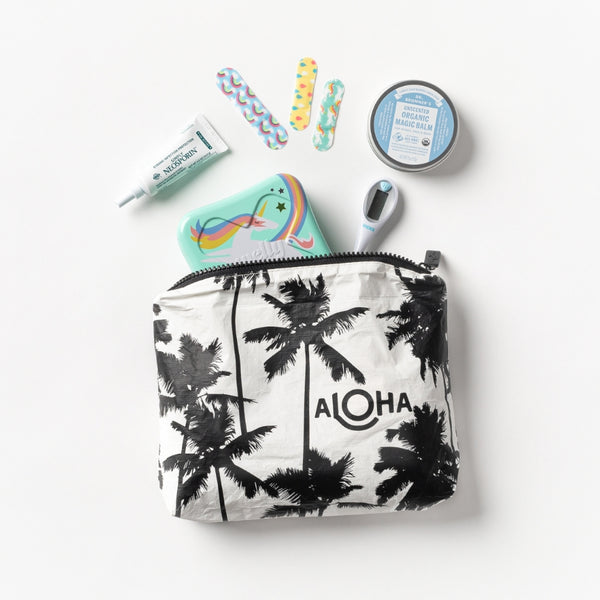 SPLASH-PROOF® is the next best thing to waterproof! Your belongings will be protected from a light splash, light rain, or a cocktail spillage, but please do not submerge your ALOHA Collection pouch with belongings inside. The zipper and seams of ALOHA Collection bags are not watertight.